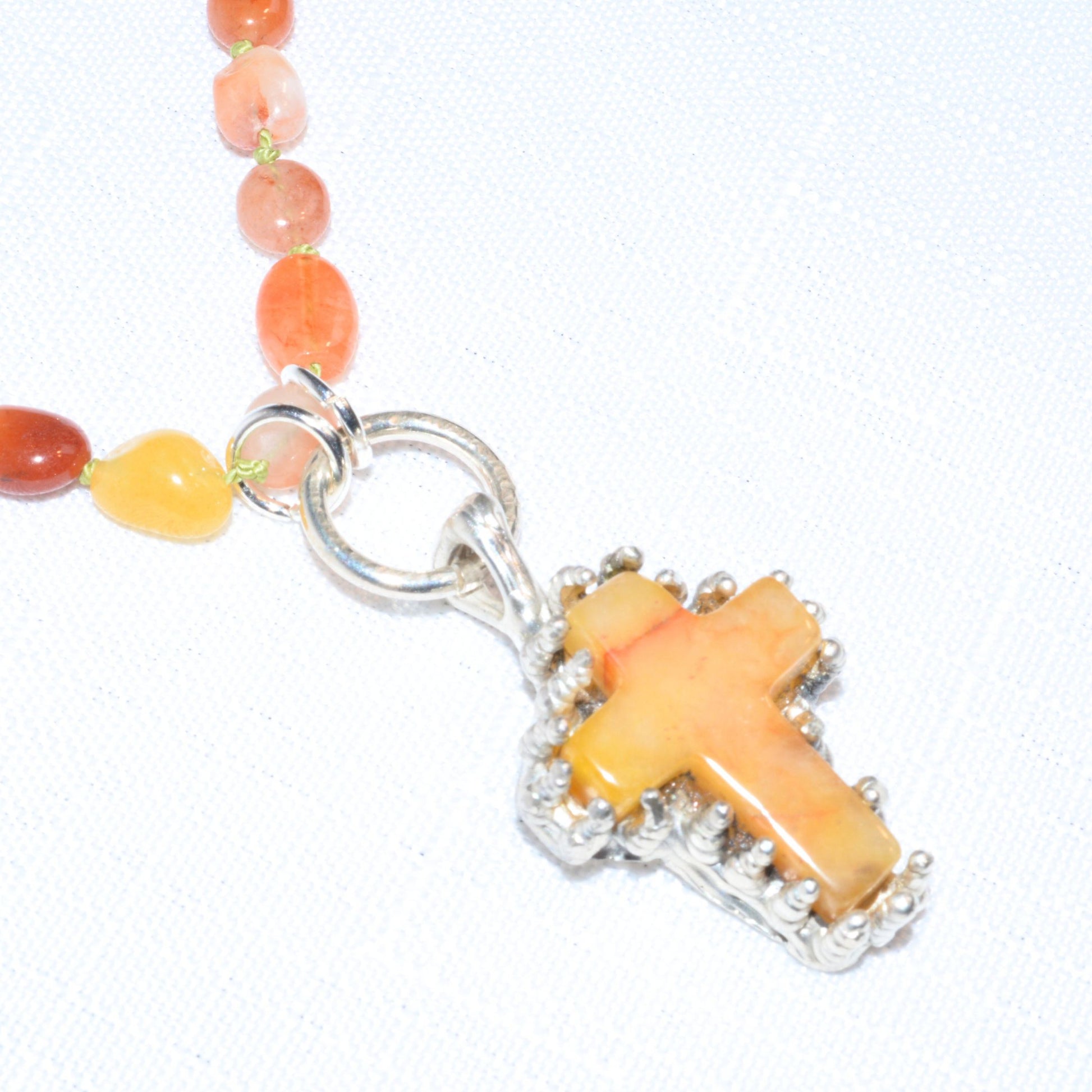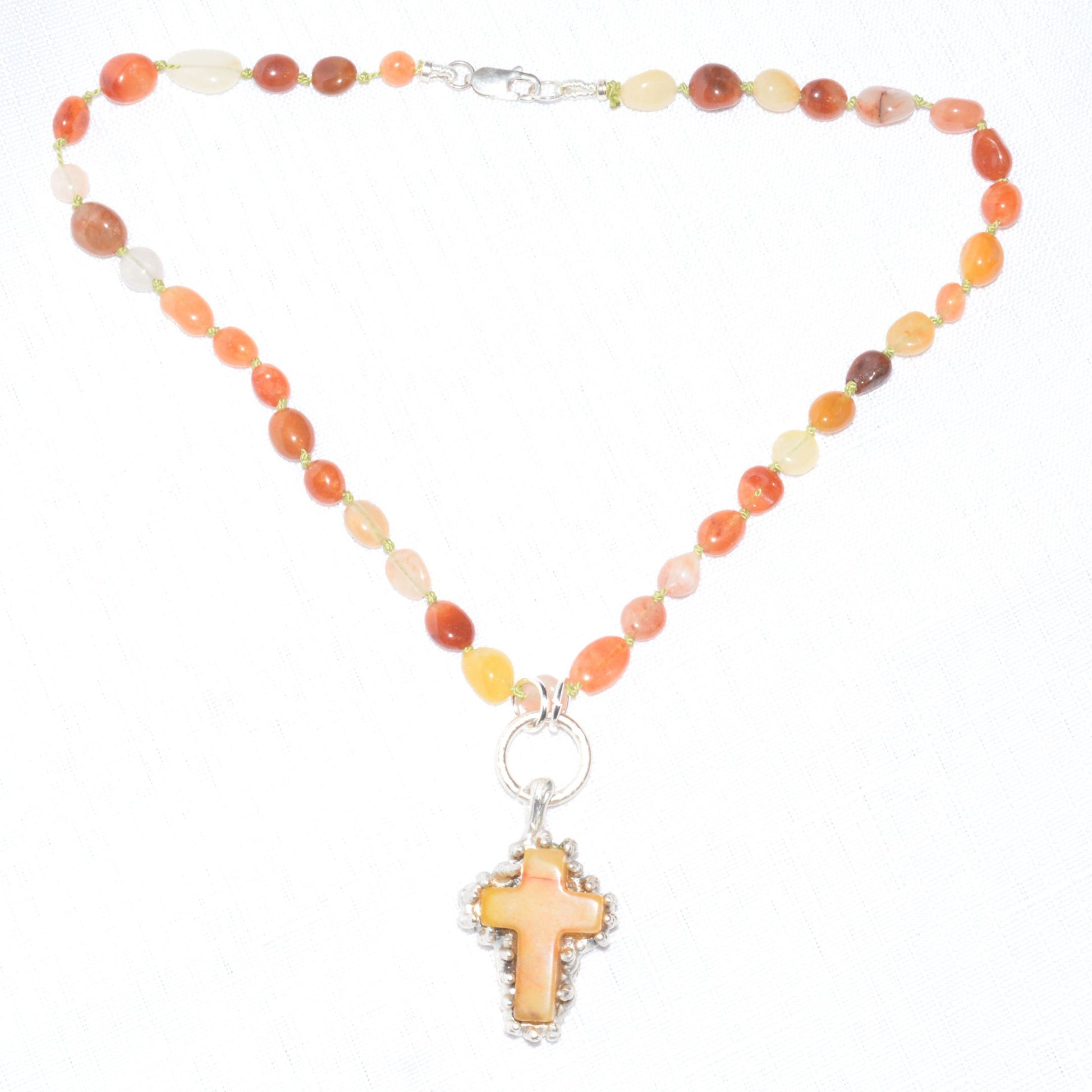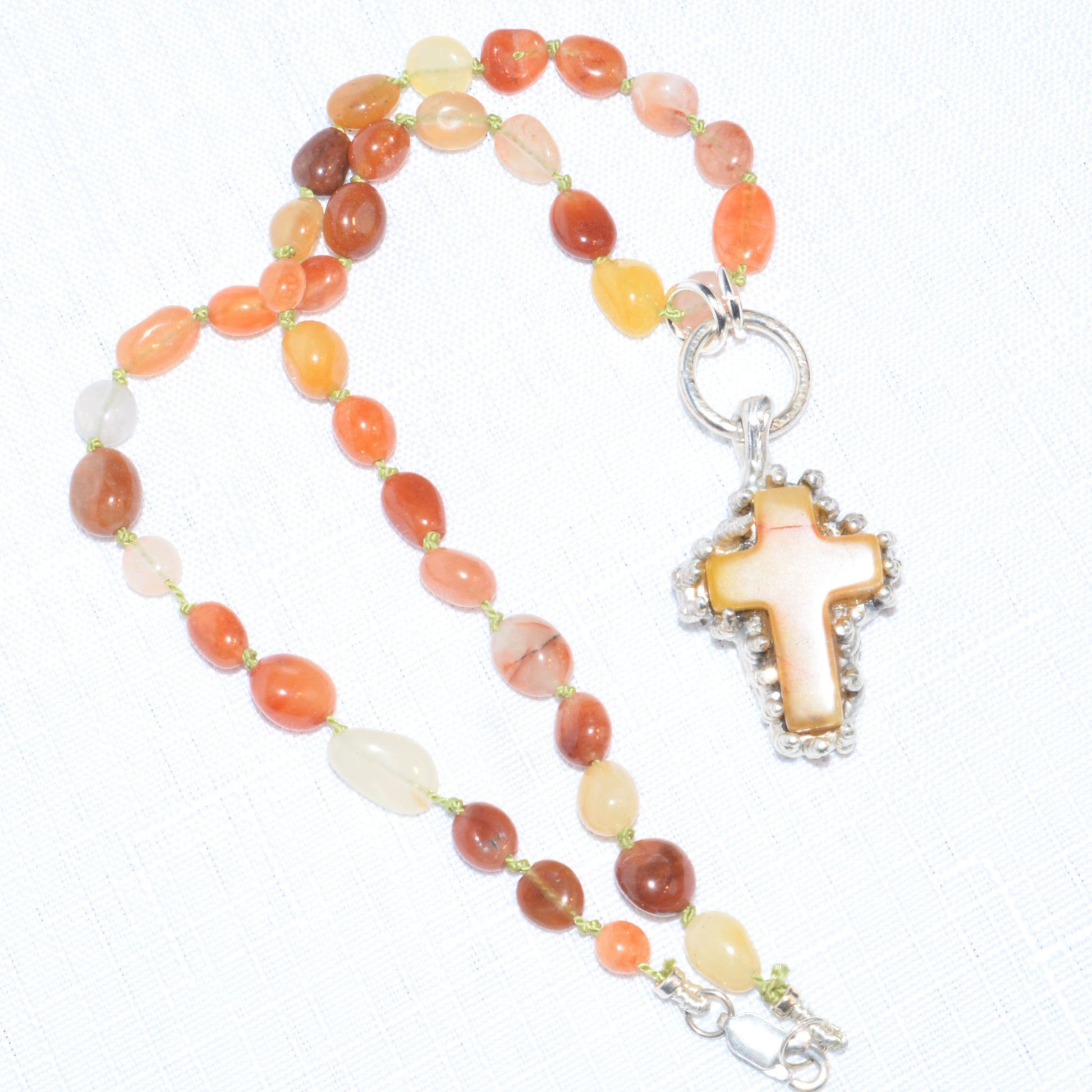 - Green Japanese silk thread beaded 'chain' with carnelian stones
